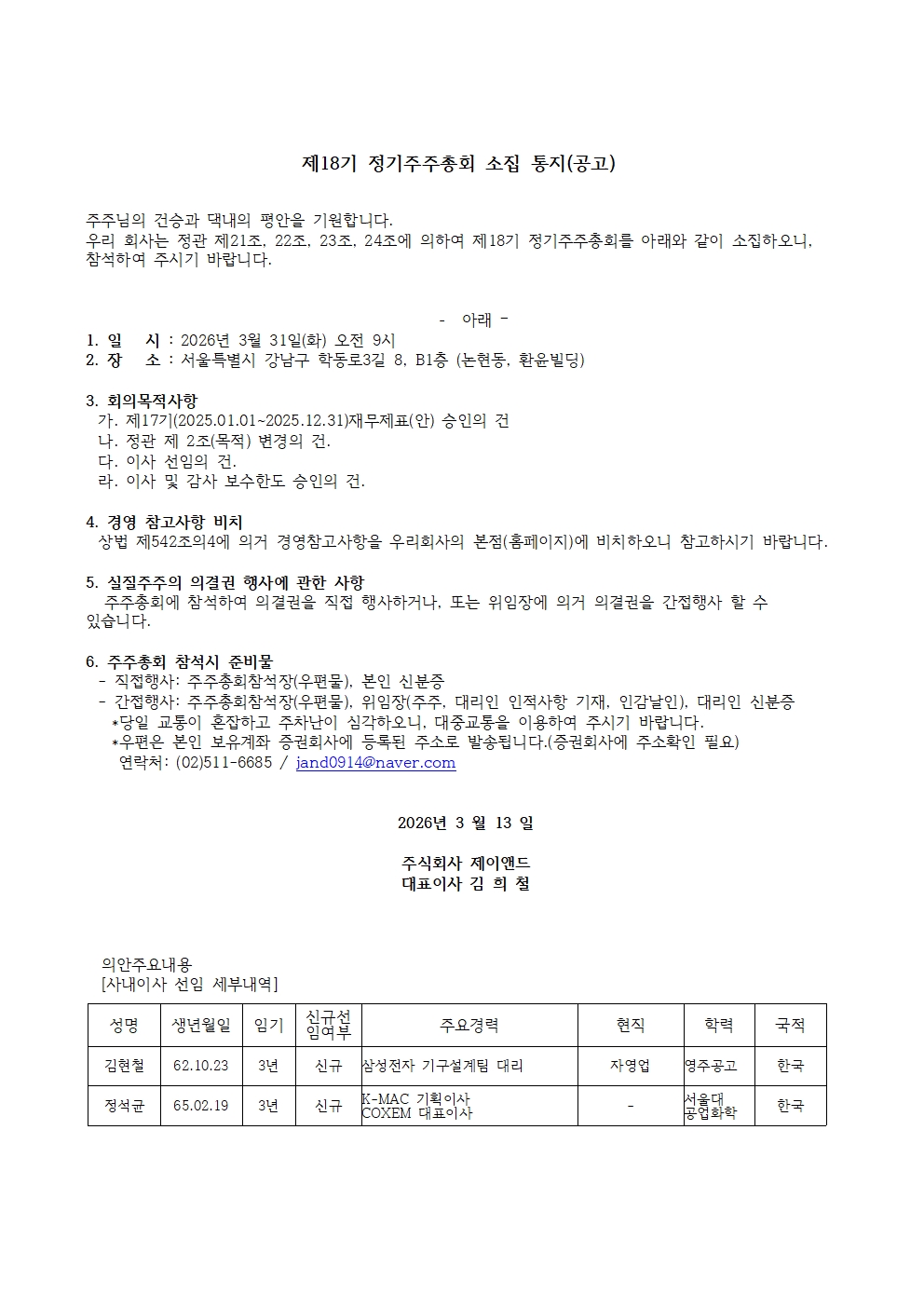 Á¦18±â Á¤±âÁÖÁÖÃÑȸ ¼ÒÁý °ø°í¹®
